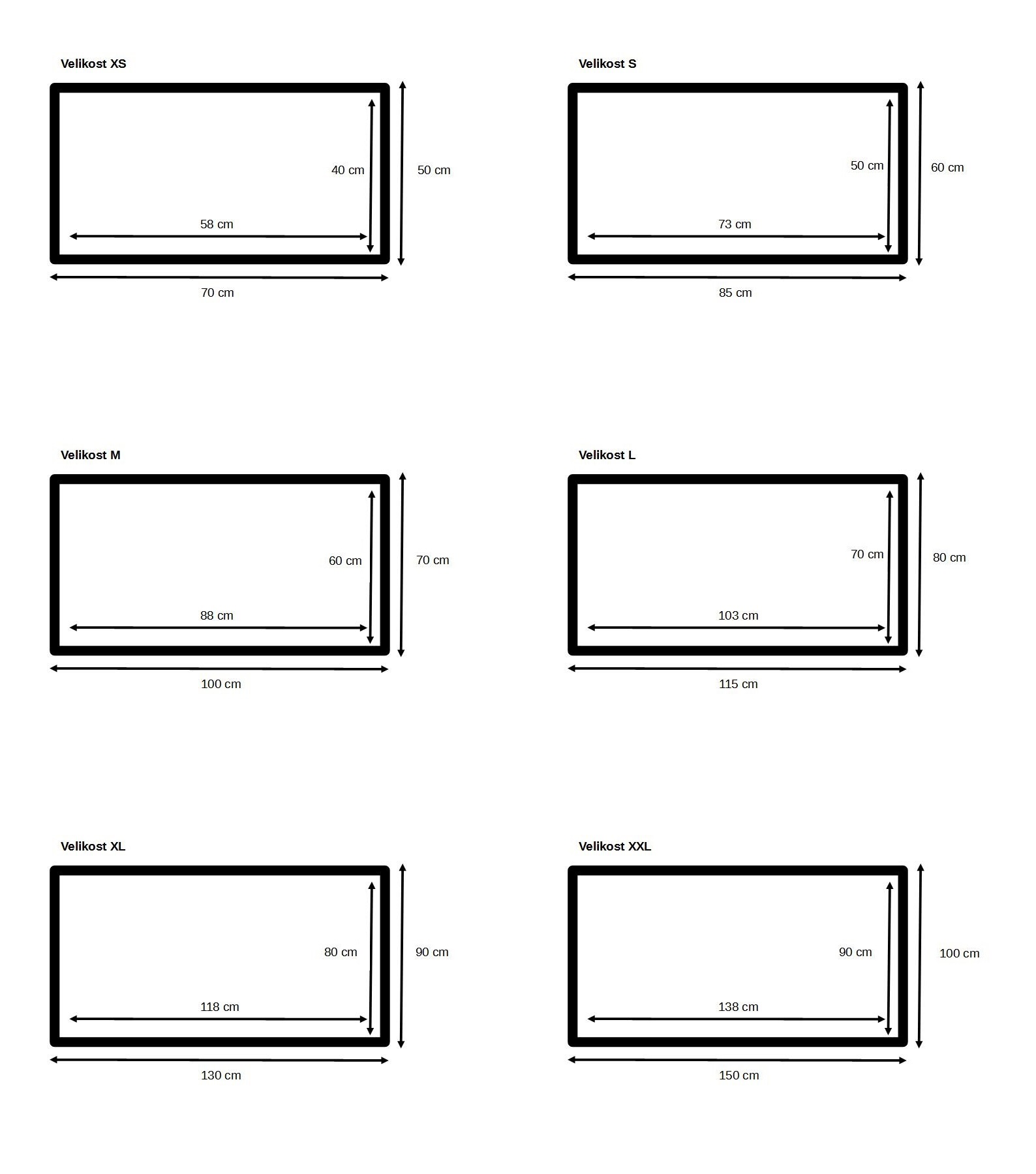 | XXL | 150 × 100 cm | 73 × 45 cm | do výšky 80 cm |