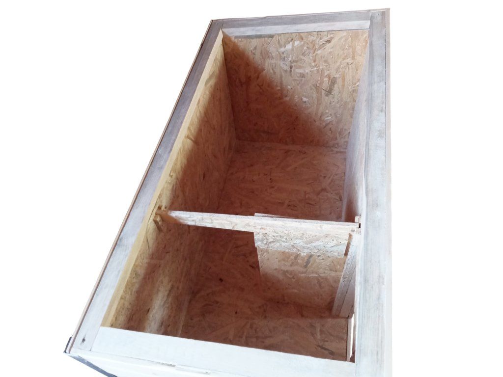Interiér je řešen pomocí OSB desky – pevné, odolné a konstrukčně stabilní. Tento materiál dobře snáší každodenní používání a zároveň pomáhá udržet tvar a pevnost celé konstrukce.